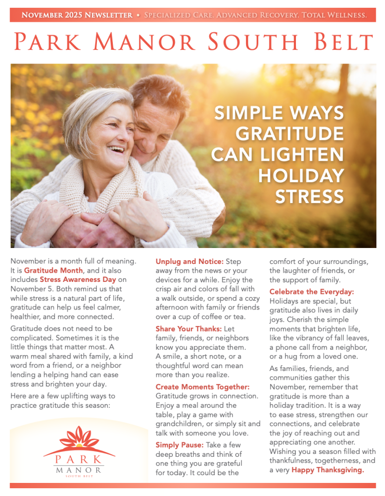 See the latest news and happenings at Park Manor of South Belt.